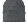 Keep your head well covered during cooler weather in our cap that has a 3-inch folding cuff for easy embroidery. | 100% acrylic (Solid) 68/32 poly/acrylic (Athletic Oxford) 66/34 acrylic/poly (Athletic Oxford/Black) 60/40 acrylic/poly (Black/Athletic Oxford, Navy/Athletic Oxford) Note: White is yellower/creamier and not a true white.
