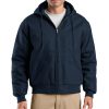 Tough enough to do the job, this work jacket layers easily over shirts and jackets so it’s great for mild or harsh weather. | 12-ounce, 100% cotton duck cloth 100% nylon dyed-to-match lining with 6-ounce polyfill insulation (Duck Brown has black lining) Hood with dyed-to-match drawcord Rib knit cuffs and waistband Front hand warmer pockets Interior pocket Decoration access pocket