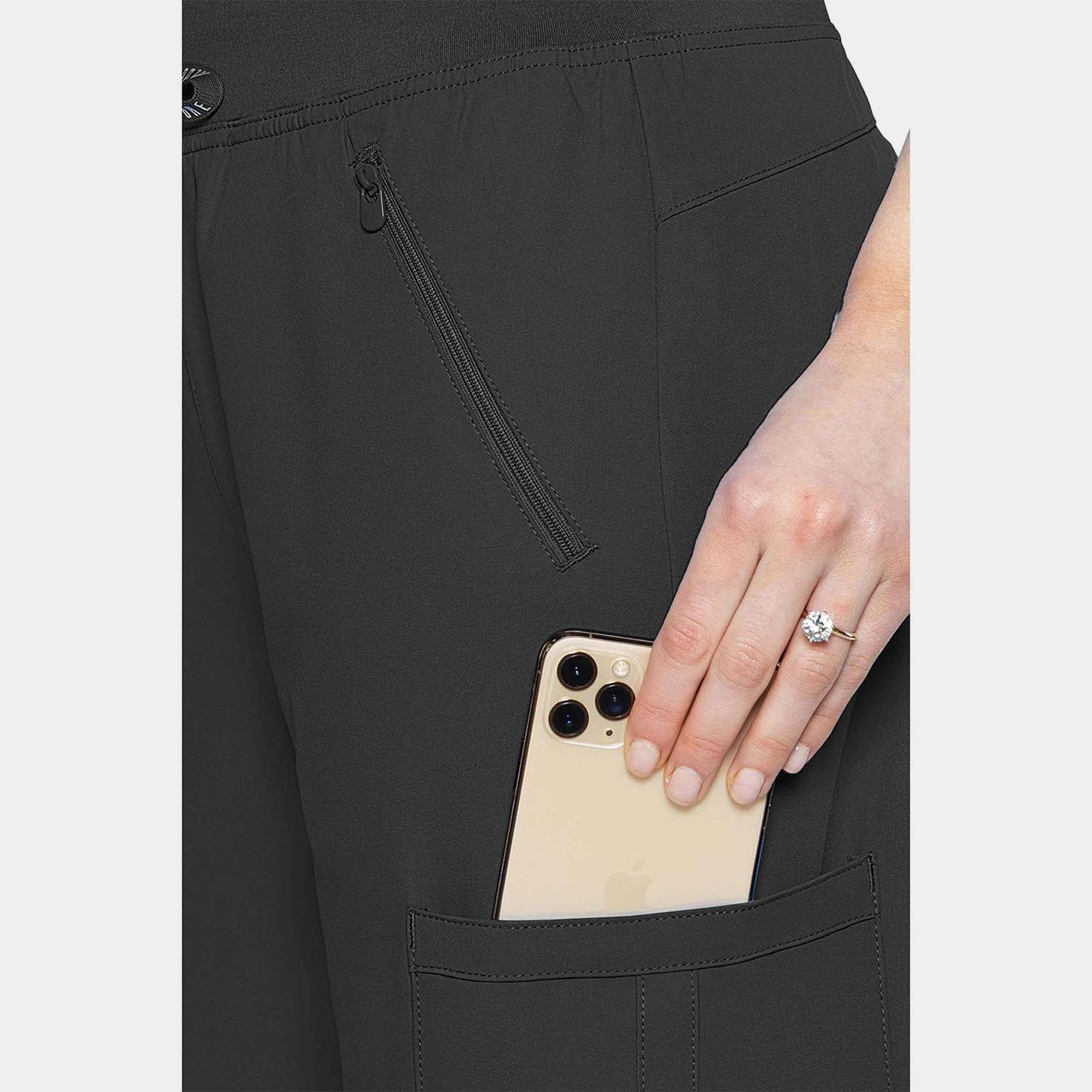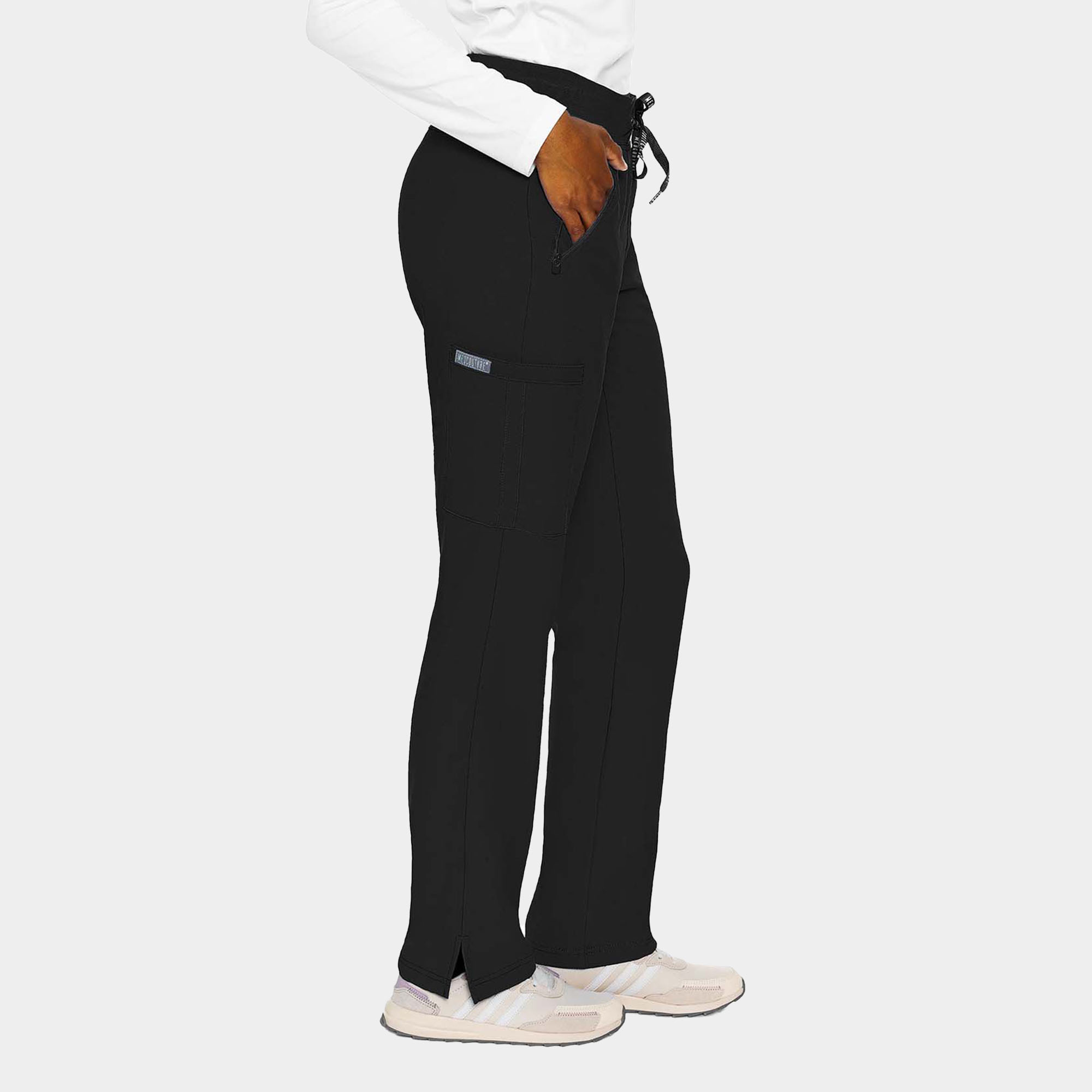 Put some spring in your step. These classic straight-leg pants feature an exclusive mechanical stretch fabric that moves with you, from the office or the nurses station to lunch or an after-hours get-together. Ultra-soft jersey-knit waistband with adjustable ties, Straight leg with side vents, Two cargo pockets, Two zipper accessory pockets, Insight Motion Fabric. Inseam: 31″
