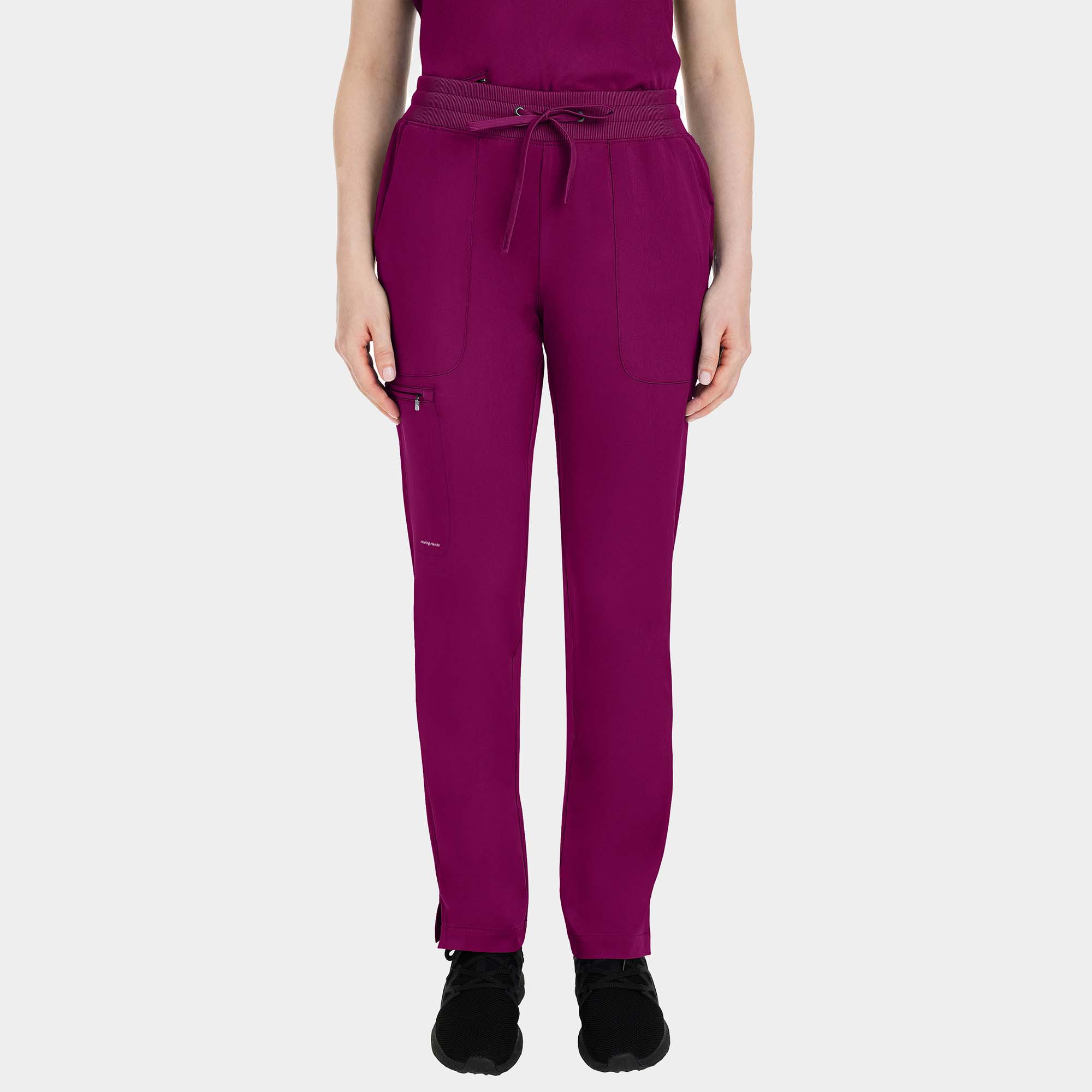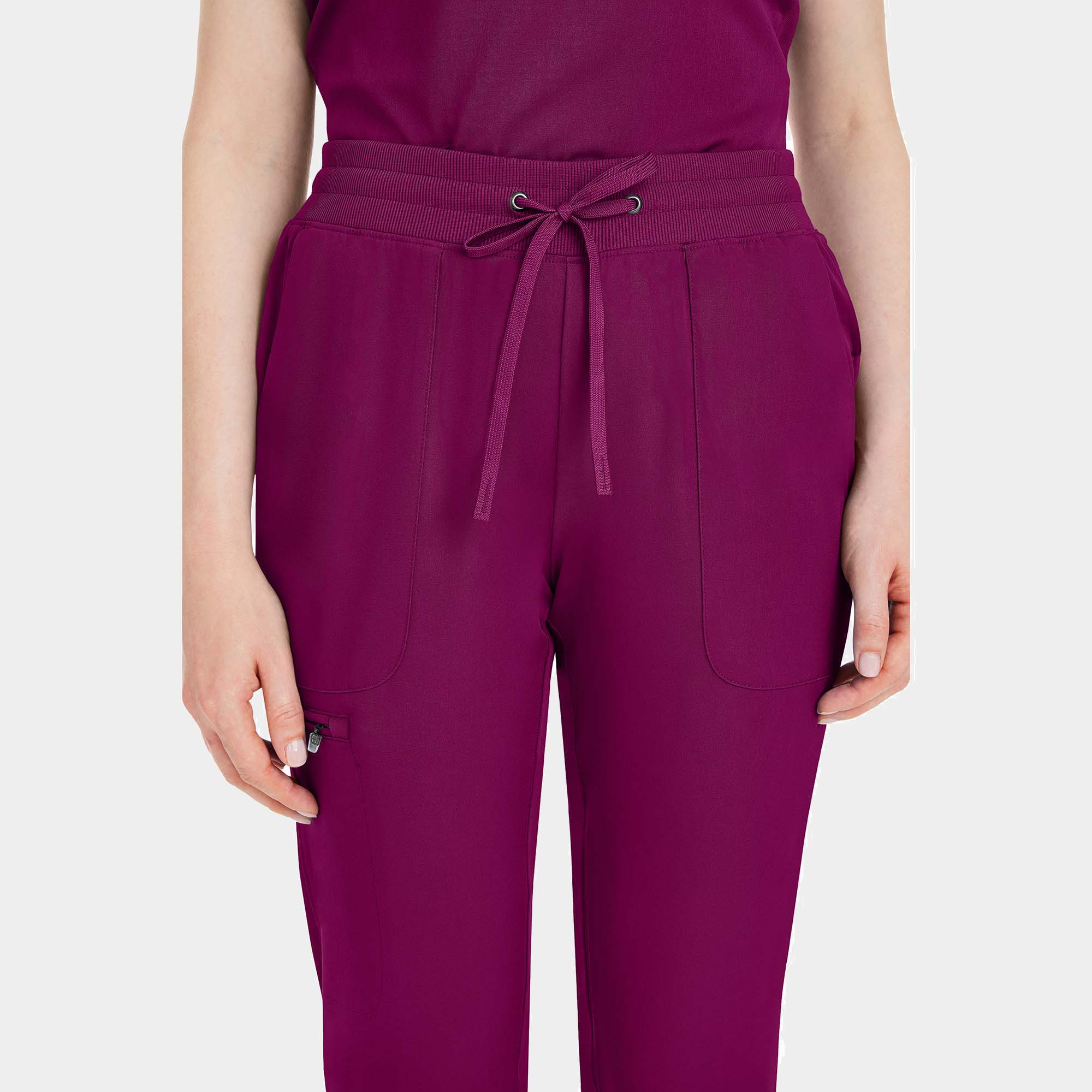 The Raine Pant has a rib-knit waistband provides extreme stretch, while the drawstring keeps your scrub pants in place.