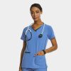 - Women’s double V-neck top with layered contrast fabric